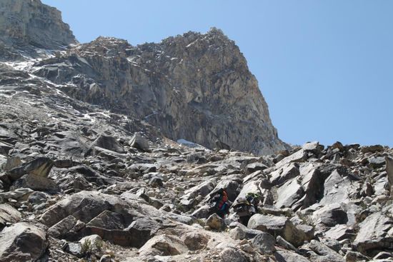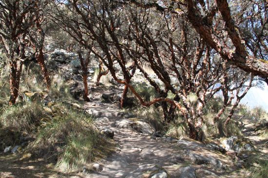Der Gang durch die Moraene ist aeusserst muessig und steinig. Auf dem letzten Stueck wird mir auch noch uebel und ich schreibe die Besteigung des Gipfels innerlich schon ab. Wenn ich auf dieser Hoehe schon krank werde, wird es weiter oben nicht besser. Ich spreche darueber mit unserem Fuehrer, der mir umgehend einen Coca-Tee kocht. Nach drei Tassen war die Uebelkeit vergessen. Dieser medizinische (!) Tee wirkt Wunder.
