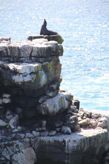 Wir spazieren zwischen den Seeloewen lang, die das Strandbad nur kurz unterbrechen, als unser Fuehrer einen Alpha-Seeloewen mimt. Der Kopf geht kurz hoch, sie legen den Scheiss-Touristen-Blick auf und gehen dann wieder in Standardposition.