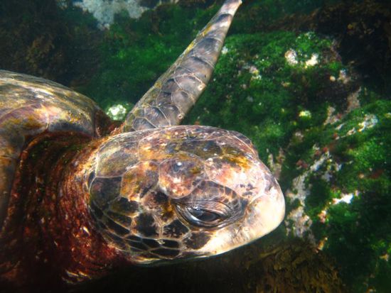 Die Insel ist ein hervorragender Nistplatz fuer Schildkroeten. Sie legen dort alle 2-3 Jahre ihre 1000 Eier. Von den schluepfenden Kroeten ueberleben in der freien Wildbahn gerade mal 2-3. Eine mickrige Quote. Riesen-Schildkroeten werden ca. 200 Jahre alt und wiegen ausgewachsen geschlagene 250 kg.