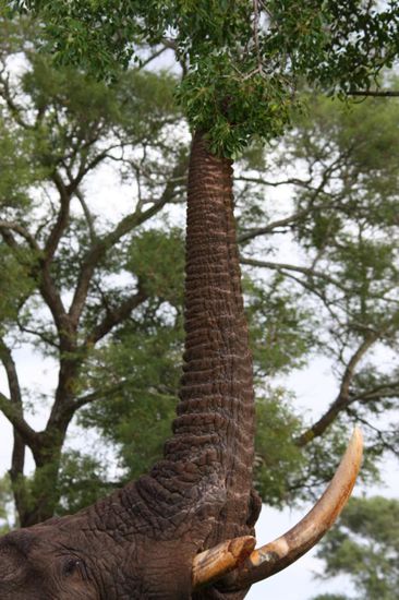 Ein Elefant haelt fuer eine ganze Weile den Verkehr auf, schlendert die Strasse entlang und keines der Autos traut sich an ihm vorbeizufahren. Wir bewegen uns langsam vorwaerts, entgegenkommende behutsam in Alarmstellung rueckwaerts. Aber der Dickhaeuter interessiert sich nicht fuer das erhoehte Verkehrsaufkommen und grast friedlich vor sich hin. Eine Strasse ist ja auch deutlich bequemer zum Gehen als der Busch und wird daher von Elefanten gerne genutzt.