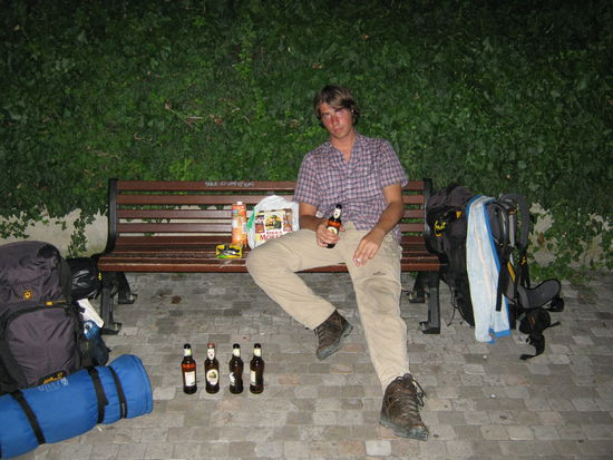 Rein ins Zimmer, duschen, schlafen. Abends aufgestanden, Kleidung im Waschbecken halbwegs mit Seife bearbeitet. Dann losgegangen Bier kaufen, und noch etwas getrunken. Morgen gehts per Zug nach Venedig und dann nach hause. Ein schöner Gedanke...