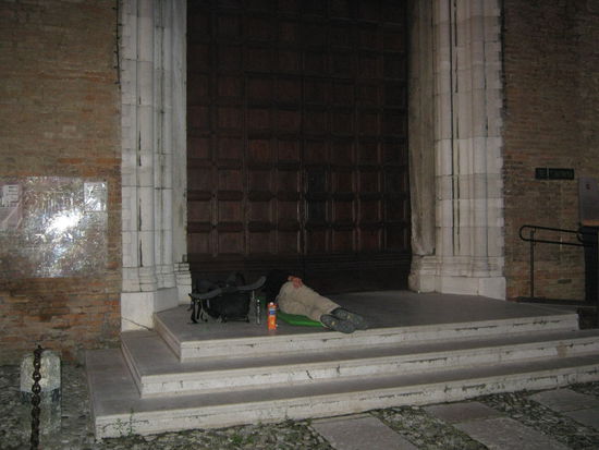 Die müdigkeit war so groß, dass wir uns im Hinterhof einer Kirche auf der Plane hinlegten um etwas zu schlafen, es ging aber nicht. Die Mücken waren zu hunderten da, und piesackten uns permanent.