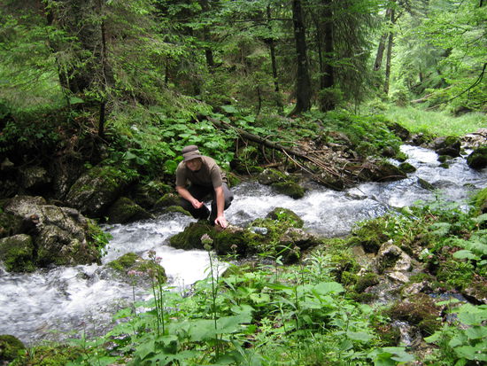 Auf der Isarbrücke in Vorderriss, wo das Wasser noch blau ist. in München leider nur eine braune Pampe.