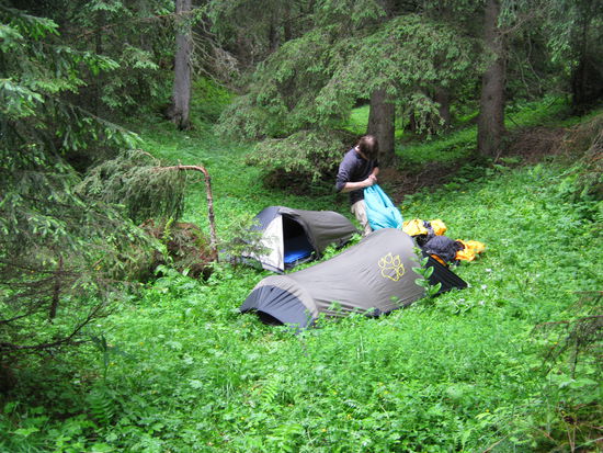 Ein Stück weiter sind wir in ein kleines Waldstück gegangen, um die Zelte aufzuschlagen. Lagen noch eine Weile auf der Plane, haben aber nicht geredet. Gab auch nichts zu sagen, dass es scheisse läuft wissen wir beide. Bleibt nur die Hoffnung auf besseres Wetter. Also Licht aus und ab ins Bett.