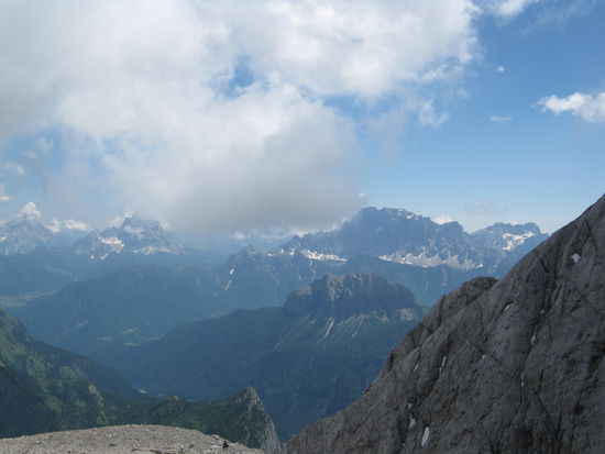 Nach dem zweiten Tag auf dem Campingplatz wollte Patrick unbedingt wieder wandern gehen. Wetter sollte aber erst ab übermorgen besser werden. Also fuhr er zurück nach Alleghe, und wir vereinbarten einen Tag später einen Treffpunkt wenn ich nachkomme. Ich blieb also noch einen Tag, unterhielt mich mit einem Paar aus Schweden das auf Interrail Tour war und bummelte noch etwas durch die Stadt. Dann gings zurück, Nachmittags los, spät abends in Belluno angekommen. Bus hoch in die Dolomiten fuhr allerdings erst wieder am nächsten morgen, also schlief ich die Nacht im Park. Wachte pünktlich auf und traf mich dann gegen 11 Uhr mit Patrick in Alleghe, um jetzt mal richtig wandern zu gehen ! Da hat der alte Drecksack sich doch tatsächlich während meiner abwesenheit 50 Euro von seinem Vater überweisen lassen und sich die Seilbahnfahrt auf die 3342m hohe Marmolada gegönnt ! Den Rest hat er verfressen... Und ich bezahle wo es nur geht mit meiner Kreditkarte für uns BEIDE. Da war ich scheissensauer... Hier die Bilder