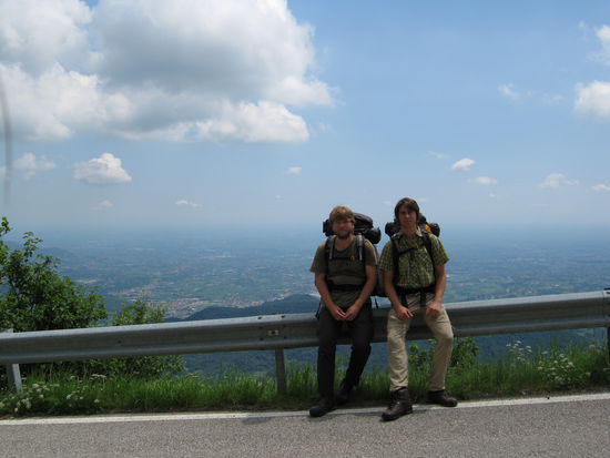 Nun gilt es den letzten kleinen Berg bis zur entgültigen Ebene zu überwinden. Der Anstieg fällt uns leicht und wir erhaschen 2 Stunden später einen Blick auf das Italien hinter den Bergen. jetzt müssen wir nur noch die Serpentinen runter, dann ist es entgültig aus mit den Bergen. Irgendwie schade, wir mussten vieles umgehen oder sogar überspringen, aber vielleicht war es besser so. Wir haben den Mund zu voll genommen, uns total überschätzt. Daraus vielleicht etwas gelernt, um es das nächste mal besser zu machen.