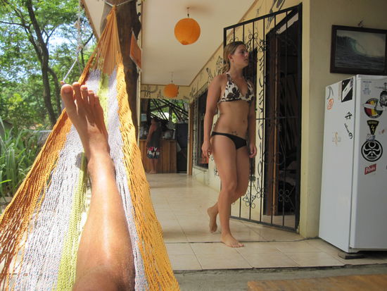 In Costa rica , Santa Teresa sind wir dann am fruehen abend angekommen und dank Jelly haben wir auch dort nen super Preis fuer ein super Hotel bekommen. Allerdings sind wir dort nur eine Nacht geblieben...es war zwar super komfortabel allerdings waren wir auch die einzigen Gaeste und so haben wir uns entschieden luxus gegen coole Leute zu tauschen und sind in ein einfaches aber super chilliges Hostel gezogen! Ich habe mir direkt nen Board fuer ne Woche gemietet und bin seitdem zu 80 % des Tages im Wasser zuhaus!!! Mittlerweile klappts echt super und ich hab den funshape gegen ein shortboard getauscht! Costa Rica is alles in allem verdammt teuer ...speziel wenn man geradee aus dem super guenstigen Nicaragua kommt...also fuer ne Sprachreise keinenfalls zu empfehlen! Ich lad noch ein paar Bilder hoch und setzt meinen Bericht die Tage fort....beste Gruesse nach Hause....noch 8 Tage!!!!