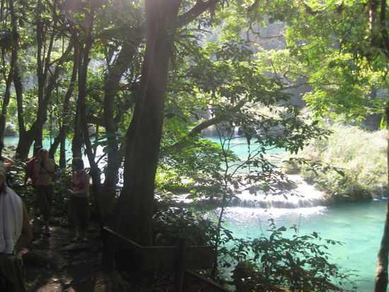 ...es ist soweit ....ich habs gefunden ...mein kleines Paradies....Nach einer Hoellenfahrt mit 15 Leuten in einem ford hiace minivan von Flores nach Lanquin erwartete mich ein Hostel , schoener haette ich es mir auch nicht malen koennen....super weitlaeufig direkt am Fluss mit Sauna, die auch eben direkt mal genutzt habe, jeder hat seinen eigenen Bungalow mit Flussund Bergblick, es gibt eine superchilliger Bar ueberall brennen Lagerfeuer , tolle Menschen und auch super wetter!!!! Die atmophere hier ist so angenehm, mal will gar nicht mehr weg!!! Kein Zeichen von Zivilisation,Stress, hektik oder sonstigem...eindfach nur unglaublich relaxt!!! Morgen gehn wir tubing und nen bisschen rockclimbing ....dann caving, raftig....hier gibts sooo viel zu machen...und kostet alles fast nix...ich bin gluecklich......Zurueck vom Ausflug und total begeistert...wir haben mit kerzen die caves durchkelttert, sind mit grossen aufblasbaren Reifen den fluss runter, haben ne jungeltour gemacht und an wunderschoene Pools @am arsch der welt@ relaxt! Es ist soooo schoen hier...aber morgen geht es wohl schon weiter ....ich lad hier noch ein paar bilder hoch....liebste gruesse nach Hause!!!!!
