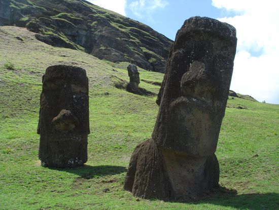 Ein Koenig aus Polynesien traeumte eines nachts von einer unbewohnten Insel. Dort wollte er eine neue Zivilisation, sein Koenigreich gruenden. Also schickte er 7 Entdecker auf grossen Kanuos los, die nach der Insel suchen sollten. Nachdem sie zurueck kamen und von der Insel erzaehlten, nam der Koening seine Frau, Kinder und Gevolk mit 7 Booten auf diese Insel. Jedoch bestand jetzt schon ein Klassenunterschied zwischen armen und reichen. Seine Arbeiter sollten anschliessend, aus Langeweile, die Moais erstellen. Fuer jeden Koenig oder reichen der Klasse wenn er stirbt. Wie die Moais spaeter auf ihren Platz kamen weis man nicht, durch Ufo-Hilfe oder man sagt auch sie sind zu ihrem Platz gelaufen. Alle Moais schauen Landeinwaerts, nur die Entdecker Moais schauen auf die See. Dies war das Leben der ersten Rapa Nui Generation.