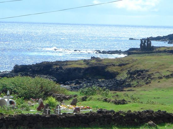 Nach 5 Std. Flug sind wir auf einer kleinen Insel mitten im Ozean angekommen. 3600 Km von Chile und ca. 4000 Km von Tahiti entfernt. Man wird mit Blumenketten begruesst und jeder hat ein Suedseelaecheln aufgesetzt.
