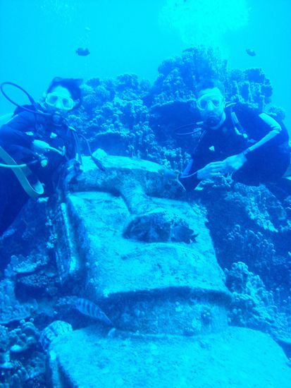 Tauchen mit einem Moai Unterwasser