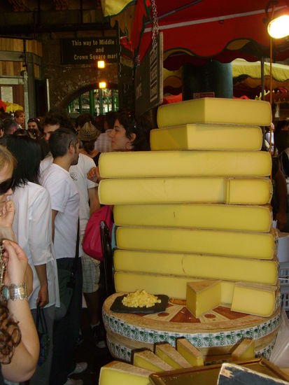 Danach gehts munter weiter zur London Bridge. Hier wird jedes Wochenende der Borough Market abgehalten - ein Essensmarkt (oder eher Fressgelage) wo es an nichts mangelt, ein Paradis für einen Goourmet bzw. Vielfraß wie mich. In den verwinkelten Markthallen fühlt man sich wie in Bella Italia und man munkelt, dass hier sogar Jamie Oliver seine Runden dreht. Es gibt sooo viel frisches Obst,Gemüse, Käse,Fisch,Antipasti,....aber auch Stände mit Öko-Burgern, Sashimi, Austern und Champus. Und das Beste: man kann (naja fast) überall probieren und schlemmen!