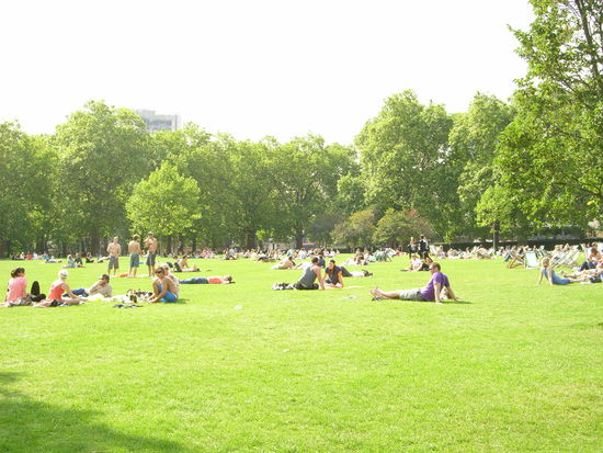 Danach nutze ich dieses Wetter-zum-Helden-zeugen um meinen Astralkörper dem Großstadtvolk zu zeigen und Sonne mich mit vielen Eichhörnchen im St. James Park. Und es kommt noch besser: mitten im Großstadtrummel kann man sich sogar Liegestühle mieten!
