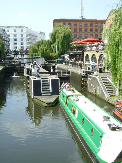 Heute früh gehts nach Camden und ich bummle dort über den bekannten Camden Market, welcher genau genommen kein einzelner Markt ist, sondern aus mehreren Straßenmärkten und Markthallen zusammengesetzt ist. Er ist eigentlich bekannt für allerlei Kitsch und Billigklamotten made in china.Aber es gibt auch viele kleine,schöne,aber teure, Designerläden. Am besten gefallen mir die Stoff- und Tuchhändler und so wandert ein 1x2 meter Wandbehang in meinen Rucksack.