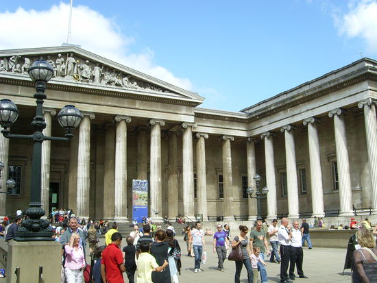Heute Morgen ging es zum riesigen British Museum, eine Art Schatzkammer des Empire (wieder mal kostenfrei ) Es hat viele Abteilungen von Ägypten, Persien über griechische u. römische Antike bis zur chinesischen Kunst. Highlights sind u.a. der Stein der Rosettte (Schrift, mit der man Hyroglyphen übersetzen kann) oder die Fresken des Athener Pantheon. Besonders schön ist die große Eingangshalle mit der riesigen Glaskuppel.