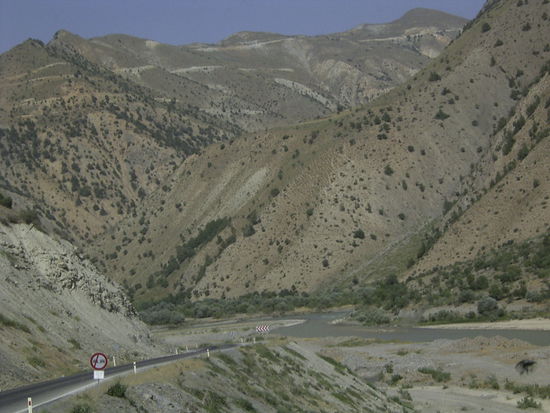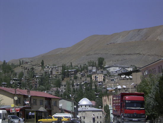 Um halb acht kommt ein einziges Mal am Tag ein Dolmus bis in Dorf gefahren. Einige Bauern warten schon. Ich will heute nach Hakkâri. Es gibt dort zwar keine besonderen Sehenswürdigkeiten, aber die geografische Lage im äußersten Südosten und die landschaftliche Umgebung der Stadt und auf dem Weg dorthin interessieren mich. In Van muß ich wieder in ein ganz anderes Stadtteil, wo die Busse Richtung Hakkâri abfahren. Start ist um neun, Fahrzeit rund drei Stunden. Rückfahrt um 14 Uhr 30, demnach muß ich um halb sechs wieder in Van sein und kann mühelos den letzten Dolmus um 18Uhr erwischen.