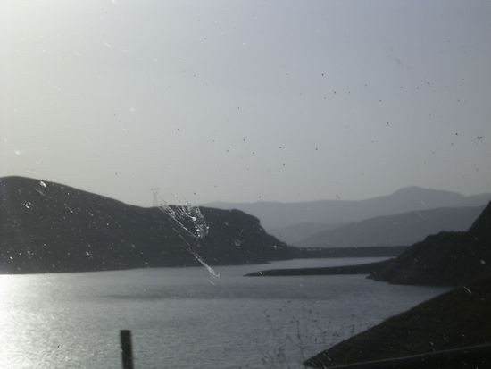 Bald holen wir einen Militärkonvoi ein. Große tarngrüne Transporter fahren langsam vor uns her. Wir sind raus aus dem engen, kurvigen Tal und die Straße ist jetzt längere Abschnitte grade, sodaß wir hin und wieder ein paar LKWs überholen können. Doch kaum haben wir das geschafft, hält uns die nächste Kontrolle an und die Laster rauschen wieder an uns vorbei. In Baskale biegen die Transporter endlich in ein Kasernengelände ein. Wahrscheinlich haben sie schweres Gefährt hier in den Südosten gebracht. Etwas später machen wir an einer Raststätte Pause. Einer der Fahrgäste lädt mich zum Tee ein, er heißt Cengiz. Wir hocken auf kleinen Schemeln an niedrigen Tischen mit einer tollen Aussicht auf die umliegenden Berge und reden Belangloses. Güzelsu-Pass, Hosap, Stausee, Van.