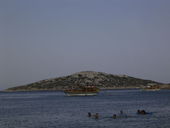 Eines späten Nachmittags, als ich aus Tasucu zurück komme sind Jan und Kai gerade dabei, ihre Ausrüstung bereitzustellen. Ali hat ein Fischerboot und sie wollen filmen, wie er die Netze auswirft und am nächsten Morgen wieder einholt. Das Boot ist groß genug, daß Jan, Kai, Ali, sein Sohn Ümit und ich Platz haben. Mit tuckerndem Motor verlassen wir langsam die kleine Hafenbucht und schippern ein Stück aufs Meer hinaus. Während die beiden Filmer Ali beim Netze auswerfen drehen, schwimme ich mit Ümit eine Runde, sodaß wir nich störend mit im Bild sind. Am Abend kommt wieder ein warmer Wind auf, stärker als die letzten Tage, fast stürmisch. Ali hat Besuch von einem Freund und sitzt mit ihm und einer Flasche Raki am Nachbartisch. Jan will wissen, ob es morgen früh windig sein wird, oder ob wir die Netze einholen können. Ich frage Ali und er mein: "Es wird windig sein, das ist zu geährlich." Beim Frühstück am nächsten Morgen erzählt Jan genüsslich:" Um fünf bin ich auf dem Balkon gestanden, die Sonne ist grad aufgegangen und es hat sich kein Lüftchen gerührt. Naja, wenn ich mit dem Typen fast ne ganze Flasche Raki getrunken hätte, hätt ich auch keine Lust gehabt, um fünf aufzustehen.