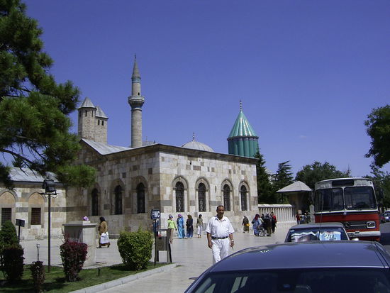 Das Mevlânâ-Mausoleum zieht Jahr für Jahr Besucher und Pilger nach Konya. Mevlânâ Celâleddîn Rûmî (1207-1273), war ein Islamischer Philosoph, der sein Leben lang in Konya wirkte. Er hat sehr viel für den Glauben getan und ist einer der erfolgreichsten Vertreter des Suffismus. Die Türkisgrüne Türbe strahlt im warmen Sonnenlicht. Männer mit Häkelmützen und Frauen in langen Mänteln mit Kopftüchern tummeln sich auf dem Vorplatz. Ein junger Mann mit sonnengerötetem Gesich und prallgefültem Rucksack gibt sich mit einem Buch mit der Aufschrift "Turkey" deutlich als Tourist zu erkennen. Auch hier auf über tausend Meter hat es wieder über dreißig Grad, aber die Luft ist angenehm trocken. In einem modernen Einkaufszentrum stehen vor einem Laden Schaufensterpuppen mit schönen Kleidern und farblich dazu abgestimmten Kopftüchern. Ein bunter, orientalischer Bazar mit geschäftigem Treiben fügt sich in die engen Gassen der Altstadt. Zurück in Silifke gibt es keinen Dolmus mehr und ein Busfahrer, der auf seinem Weg nach Antalya unweigerlich in Bogsak vorbeikommt nimmt mich kostenlos mit.