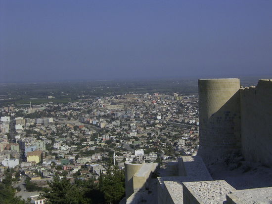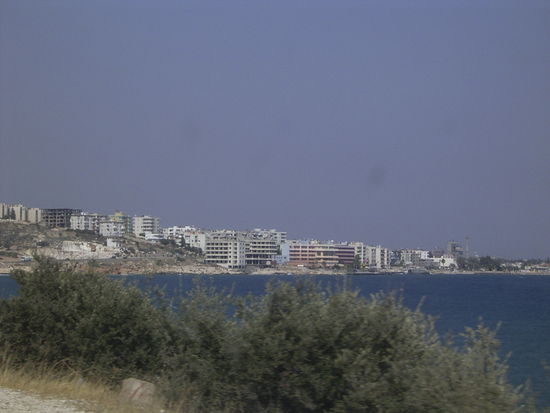 In Siverek, auf halbem Weg zwischen Urfa und Diyarbakir, staut sich der Verkehr. Weit vorne blinkt ein Blaulicht im Dunkel. Die Polizei führt eine Razzia durch. Gott sei Dank interessieren sie sich heute nur für PKWs und nicht für Reisebusse. Fahl und ohne Hof schiebt sich der abnehmende Mond über den Horizont. Es ist schon nach Mitternacht, als wir Birecik erreichen, wo die nächste Pause fällig wird. Ich habe mittlerweile einen Bärenhunger und hol mir einn der leckeren Adanaspieße. Ich schlafe nur wenig oder gar nicht und gegen Morgen zieht sich die Fahrt wie Kaugummi. In Mersin verlassen wir die Autobahn und kommen jetzt langsamer voran. Die Gegend wird immer dichter besiedelt. Die Dämmerung erwacht und taucht die mediterrane Landschaft in ein freundliches Morgenlicht. Wir durchfahren einige Ferienorte. Hier machen die Türken Urlaub. Rot leuchtet die Mädchenburg Kizkalesi in der Morgensonne. Ein König träumte, daß seine Tochter einen tödlichen Schlangenbiss erlitt. Er baute für sie die Burg im Meer, um sie zu schützen. Per Obstkorb kam die Schlange auf die Burg.