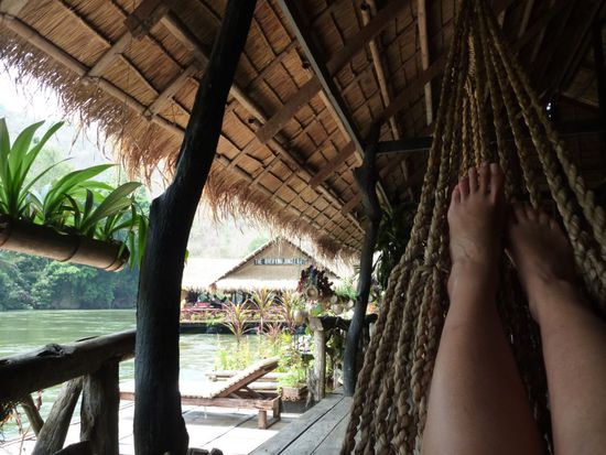 Zumindest gröhlte ich nicht sondern ging brav zurück zum Floß-Resort. Der eine Holländer hatte sich gleich mal beim "Schwimmen" den Zehennagel abgerissen.