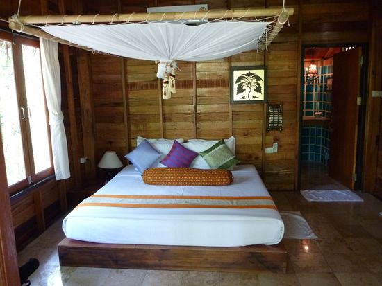 Das ist glaub ich die nobelste Unterkunft von allen meinen Reisen bisher. Jeden Abend kommen 3 Frauen und bringen das Moskitonetz an. Dekadent!