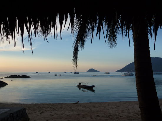 Normaler Tag auf Ko Tao: Um 6 klingelt der Wecker und auf dem Balkon nehme ich Minibananen und Cola light zu mir, bis auf einen Schlag die Grillen anfangen zu zirpen. Das ist das Zeichen zum Aufbruch und ich schnappe meine Tauchklamotten und gehe in der Morgendaemmerung ca. 5 Minuten am Strand lang zum Divepoint.