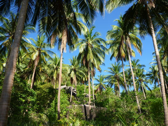 So laesst es sich leben! Die Straende hier sind traumhaft schoen, mit rundgeschliffenen Granitfelsen, grossen Kokospalmen und weissem Sand.