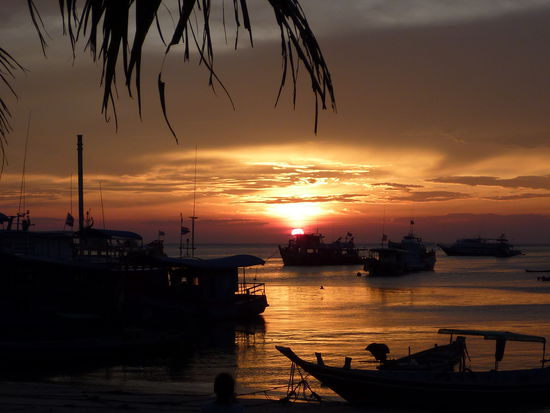Nach dem ein oder anderen Mangocheck oder nem kleinen Snack, Thai- Nudelsuppe oder sowas, gehts dann wieder ins Haeuschen, duschen, relaxen, dann ist es schon Zeit, ins Dorf zu gehen, etwas Internet schreiben und dann Sunset-Singha am Strand. Danach esse ich meistens im Paprika und quatsche noch etwas mit den anderen Tauchern, die da meistens auch sind.
