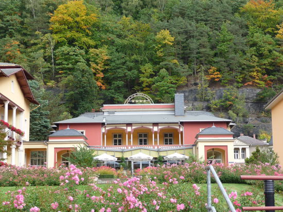 In der Nacht regnete es ausgiebig und ein kräftiger Herbstwind blies auf den Höhen des Nikolsdorfer Berges. Am Morgen war es zwar trocken, aber bedeckt und die Temperaturen waren eher im Fröstelbereich. Also ging es heute auf zu einem Wellness-Tag nach Bad Schandau. Wir packten nach dem Frühstück die Badesachen zusammen und fuhren an die Toskana-Therme direkt am Elbufer von Bad Schandau.
