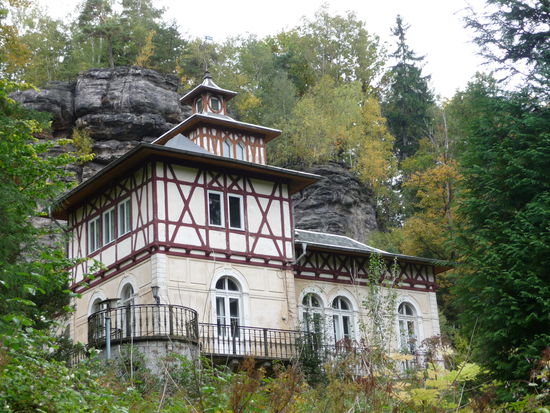 Zuvor allerdings durchquerten wir den Ort Schweizermühle. Zu Beginn des 19. Jahrhunderts muss dies ein durchaus mondäner Kurort mit der Bezeichnung "Bad Schweizermühle" gewesen sein. Heute dagegen verfallen die prachtvollen Gebäude und führen ein Dasein im Dornröschenschlaf. Informationstafeln zufolge gibt es hier wohl einen Freundeskreis, der sich dem Erhalt dieses Ortes gewidmet hat. Eine Aufgabe, die es wert wäre von Erfolg gekrönt zu sein.