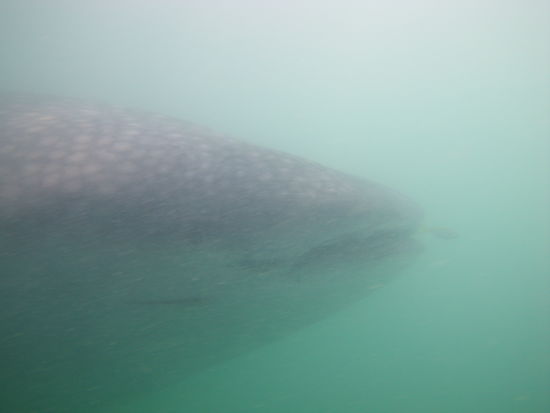 Wir überholten den Hai und dann hieß es: Schnorchel aufsetzen und rein ins Wasser! Der erste Moment wo man runter schaut und den riesigen Walhai (der erste war 9m lang!!))auf sich zukommen sieht ist einfach unbeschreiblich, da bekommt man richtig Gänsehaut.... dass Wasser war auch nicht so klar wegen dem vielen Plankton, da kann man nur ahnen was um einen so herumschwimmt.