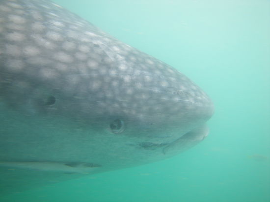 Insgesamt sahen wir 7 Walhaie und es war jedesmal ein Erlebnis, bis auf einen Meter konnten wir rankommen, da sieht man dann auch das riesige Maul....