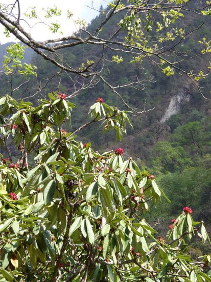Ab Bamboo wird der Wald dichter und erinnert ein wenig an unseren Laubwald, auch wenn die baeume hier groesser wirken und Rhododendron-Baeume dabei sind, welche bei uns nur als Gebuesche vorkommen.