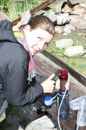 Jogi verbrachte den Tag im Bett und ruhte sich aus, waehrend Isi einen Haufen Wasser filterte, endlich mal zum lesen kam, sich gut bekochen liess, Jogi umpflegte und Bekanntschaft mit einem allzu goldigen aber dauersabbernden Kind machte, das vor allem ihre Sonnenbrille sehr interessant fand. Hoffen wir mal, dass es mir so keine Laeuse uebertragen hat