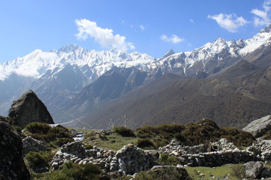 Da es waehrend dem ganzen Trek fast jede Nacht in den tieferen Gebieten geregnet hat, hatten wir jeden Tag klare Sicht und unglaubliche Ausblicke auf die hohen Berge. So auch diesen Morgen in Kyanjin Gompa.