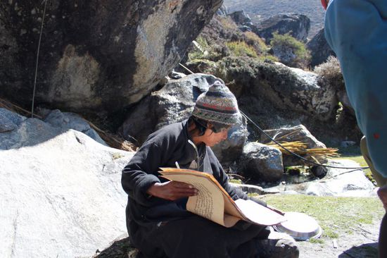 Aber auch hier haben wir uns wieder verlaufen, was aber sehr gut war, da wir von zwei als Einsiedler lebenden Moenchen zu sich gerufen wurden und ihre Wohnhoehle und ihre Schriften, aus denen sie meditieren, begutachten durften.
