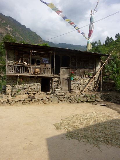 Uebernachtet haben wir bei den Eltern von einer Lodgebesitzerin in Bamboo. Bei einem Tee in der Kueche hat uns die Lodgemama ganz wunderbare Momos (aehnlich wie Maultaschen) zubereitet. (Momo, du darfst ruhig weiter lesen, sie wurden ohne echte Momos zubereitet Es war mit das beste Essen auf unserer Trekkingtour!