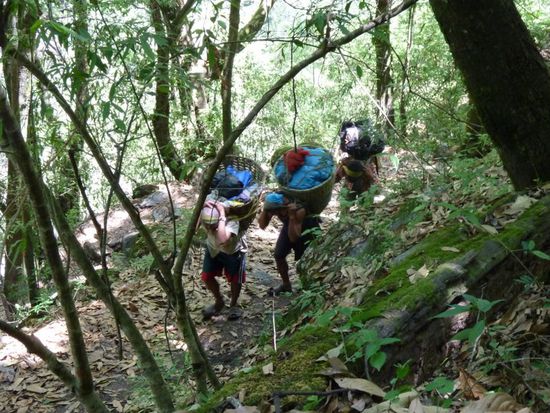 Es muss erwaehnt werden, dass dieses Gebiet sehr unwegsam ist und deshalb fast alle Waren in Koerben von Traegern auf dem Ruecken transportiert werden. Zum Teil sind das bis zu 40-50 Kilo, die da ein Mann traegt, der selbst kaum mehr wiegt. Unglaublich! Deshalb wird auch alles teurer, je weiter man sich von der naechsten Strasse entfernt und je weiter oben es ist. Deshalb ist es wirklich sinnvoll etwas zum wasseraufbereiten dabei zu haben. Unser Filter hat sich jetzt schon ausgezahlt.