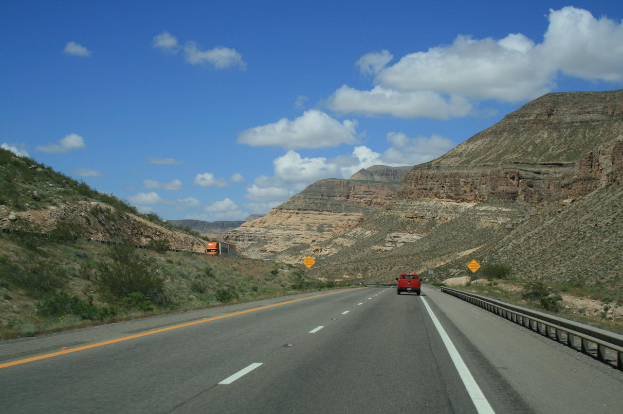Wir verlassen den Zion Nationalpark und fahren ca. 1 Stunde übers Land, um danach auf die Interstate 15 Richtung Las Vegas zu kommen. Der Campground hat uns super gut gefallen, der Preis stimmte und abends mit River-Rauschen einschlafen hat was! Nun müssen wir also all die geschrubbten Höhenmeter wieder runter, und das mit 70 Meilen/Stunde.