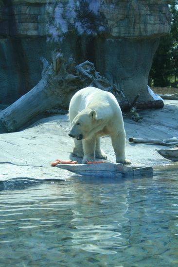 Im neu gebauten Eisbären Teil war gerade Fütterung, witzigerweise mit Möhrchen. Die kommen am Pol zwar nicht so häufig vor, schmecken denen aber trotzdem oder gerade deshalb tierisch gut.