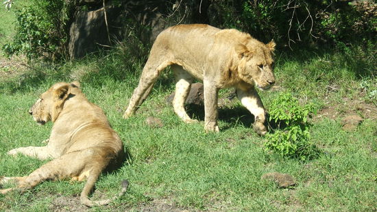 Ursache dieses Auflaufs ist nämlich die Königin aller Tiere: Zwei Löwendamen liegen faul und satt im Schatten der Bäume. Nach und nach kommen auch noch mehr davon zum Vorschein und spätestens jetzt weiß ich, dass sich jeder Cent der 60 US$ (Wie viel auch immer das sein mag) gelohnt hat.