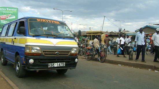 Wir nehmen unsere Sitzplätze ein und schlafen bald darauf ein. Doch nach kurzer Zeit ist es aus mit der Ruhe. Als ich begriffen habe, wovon ich gerade aufgewacht bin, pralle ich mit dem Kopf an die Decke. Unter dem Bus: ein Meer aus Schlaglöchern auf einer staubigen vom Schwerlastverkehr dominierten Sandpiste. Doch der Mann am Steuer schert sich nicht drum und bügelt mit Vollgas von einem Schlagloch zum nächsten, als wäre der Teufel hinter ihm her. Über die teilweise katastrophalen Zustände der kenianischen Straßen habe ich schon oft gelesen, doch das hier übertrifft all meine Erwartungen und neidisch blicke ich auf die Fußgänger und Radfahrer, die sich die benachbarte scheinbar fertige aber noch nicht freigegebene Asphaltpiste zu Eigen gemacht haben.
