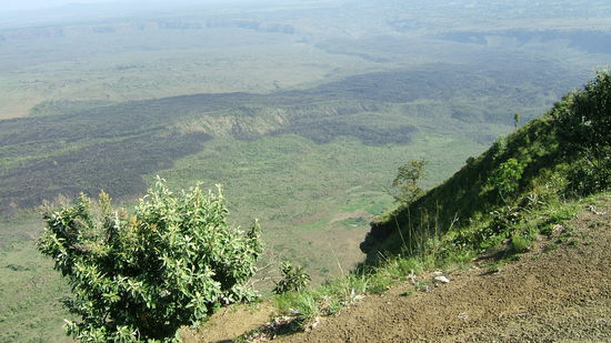 Es folgen zirka 20 Minuten Fahrt auf einer Schotterpiste, die nicht minder langweilig ist, als im Lonely Planet beschrieben. Die Entschädigung folgt natürlich prompt, wenn man dann auf dem Rand eines Kraters mit etwa zwölf Kilometern Durchmesser steht und 400 Meter in die Tiefe blickt. "Ort der Leichen", bedeutet es in der Sprache der Massai, gemeint ist der Ausgang einer blutigen Schlacht zwischen zwei Massai-Gruppen gegen Ende des 19. Jahrhunderts.