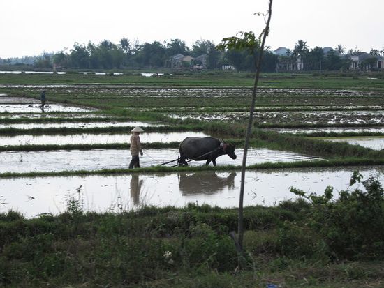 Von hier aus gings dann mit unseren High-End-Fahrrädern (IRONIE!), die im Hotelpreis inbegriffen waren, vorbei an typisch vietnamesischer Landschaft an den nächstgelegenen Strand 2 KM weiter.