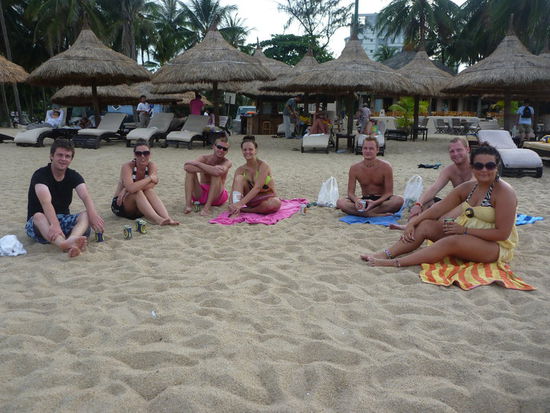 Am Folgetag nachm Booze Cruise gings dann wieder an den Strand und es kam so manche witzige Geschichte zu Tage. Ursprünglich hatten wir eigentlich geplant bis zu dem Tag in Nha Trang zu bleiben weil hier jeden Samstag Abend ne große Beachparty stattfindet, da aber an dem Abend keiner Lust auf Party hatte und es sowieso regnete wollten wir uns zunächst paar Filme leihen und einfach DVDs schaun. Leider war der Laden aber schon zu als uns das einfiel und so musste halt HBO (Englischsprachiger TV Sender) herhalten.