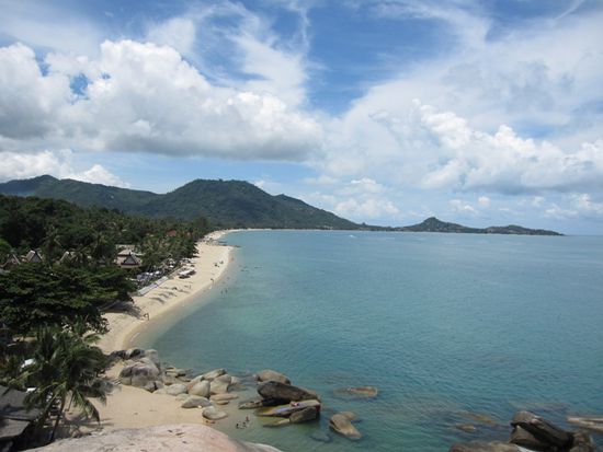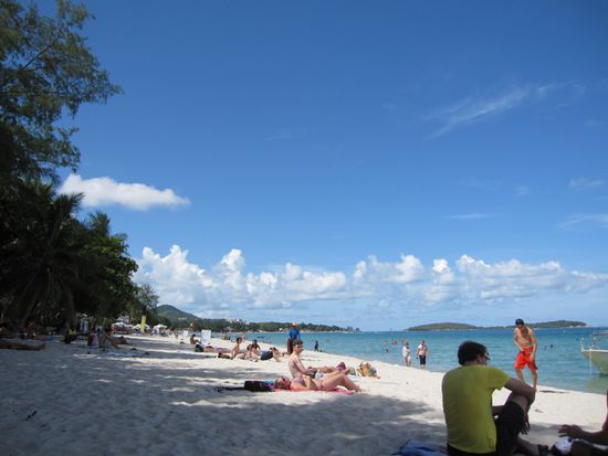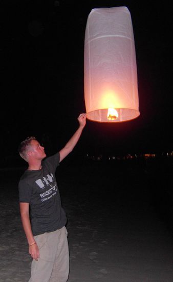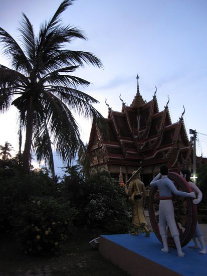 Als wir Ko Samui ankamen wurden wir dann direkt wieder von zig Taxifahrern belagert und hätten viel zu viel für den "very long way" bezahlen sollen, der Trick einfach zu behaupten dass man dort schon mal war und es nicht weit ist hat sich hier mal wieder als hilfreich herausgestellt, ist nämlich immer dasselbe. Auf jeden Fall gings dann auf einmal doch günstiger und wir wurden zu unserem Wunschstrand "Chaweng" gefahren. Angekommen ging wieder die Zimmersuche los, da es bereits dunkel wurde sind wir etwas in die Bredouille gekommen, konnten dann aber letztlich etwas weiter entfernt vom Strand was richtig gutes und günstiges finden - mein bisher größtes Zimmer mit echt guter Ausstattung! Da es wie gesagt schon spät war ging dann bis auf ein richtig gutes Essen beim Schweizer Restaurant um die Ecke und ein bisschen herumlaufen am Strand und in dem Städtchen nicht mehr viel! Haben lediglich noch ein paar Ballons aufsteigen lassen die laut Thaiglauben Glück bringen sollen, die Dinger sieht man hier immer wieder mal fliegen da abends am Strand jede Menge Verkäufer damit rumlaufen! Feuerwerk hätts auch gegeben aber das haben wir uns gespart!