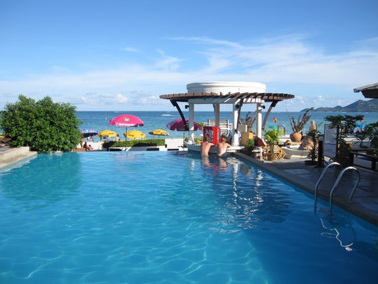 Da unser Strand dann doch der schönste war gings dann dahin zurück um noch ein wenig dort herum zu lungern. Wie wir später herausgefunden haben durften wir als Gäste unseres Hotels noch einen Pool eines anderen richtig schicken Resorts direkt am Strand mitnutzen und so haben wir uns das dann natürlich auch noch reingezogen...richtig geil so ne Poolbar!
