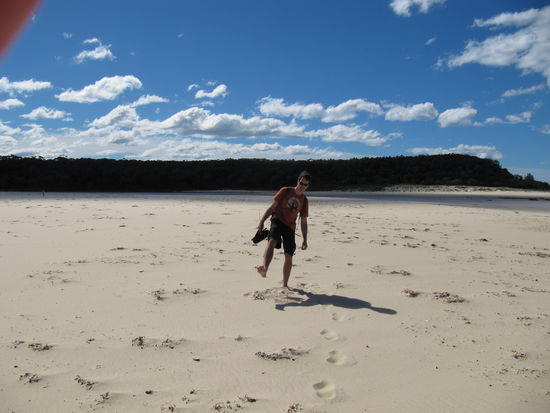 Am nachsten Tag macten wir unsere Mittagspause an einem herrlichen, direkt hinter den Duenen gelegenen See. Hier haben wir einem gestrandeten Stachelrochen das Leben gerettet. Leider mussten wir weiter fahren, ansonsten waere es ein toller Platz zum Uebernachten gewesen.