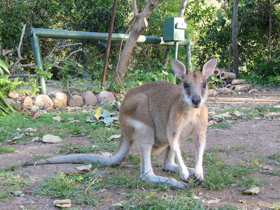 Weiter sollte es nun an die Whitsunday Kueste gehen, die anderthalb Wochen zuvor von einem Zyklon verwuestet wurde. Dementsprechend haben wir viele zerstoerte Waelder und Kuestenabschnitte gesehen und die meisten Nationalparks waren noch nicht wieder zugaenglich. Deshalb war unsere naechste Station Cape Hillsborough. Hier gab es zahme, wildlebende Kaenguruhs, Mangrovensuempfe mit Schlangen und anderen furchteinfloesenedem Getier und einem herrlichen 23m langen Pool auf dem Campingplatz.